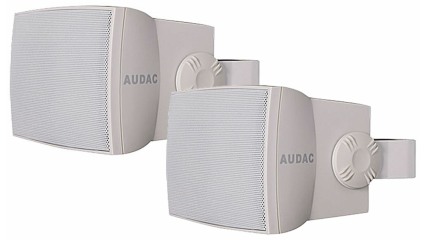 Weißer IP 55 Lautsprecher der mit 100V Technik oder 8 Ohm 30 Watt funktioniert.
